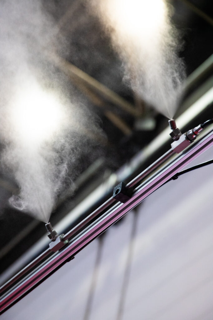 A szabadalmaztatott Finestfog rozsdamentes acél fúvókák alkotják a Finestfog rendszer központi elemét. A fúvóka betétje egy speciális furattal és egy végső, kézzel megmunkált felületkezeléssel kombinálva egyedülálló porlasztási mintázatot biztosít: a vízet rendkívül finom aeroszollá porlasztja, amelyet a levegő gyorsan és hatékonyan képes felszívni. Ezenkívül egy visszacsapó rugó biztosítja, hogy az üzemszünetek között a fejek csepegésmentesen záródjanak, ami tovább növeli rendszereink hatékonyságát és megbízhatóságát.